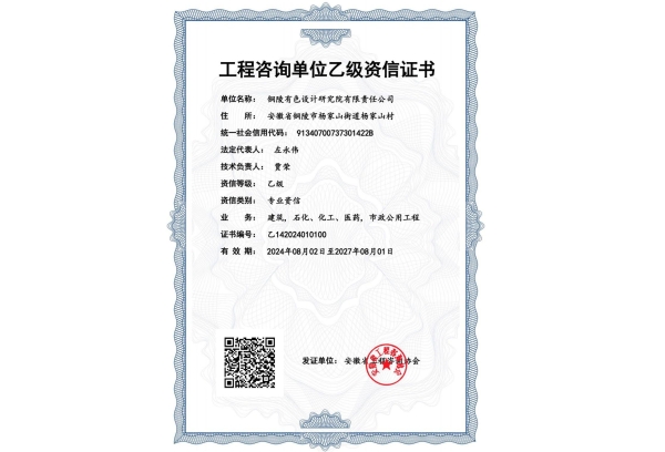 工程設(shè)計(jì)(冶金行業(yè)甲級(jí))資質(zhì)證書(shū)